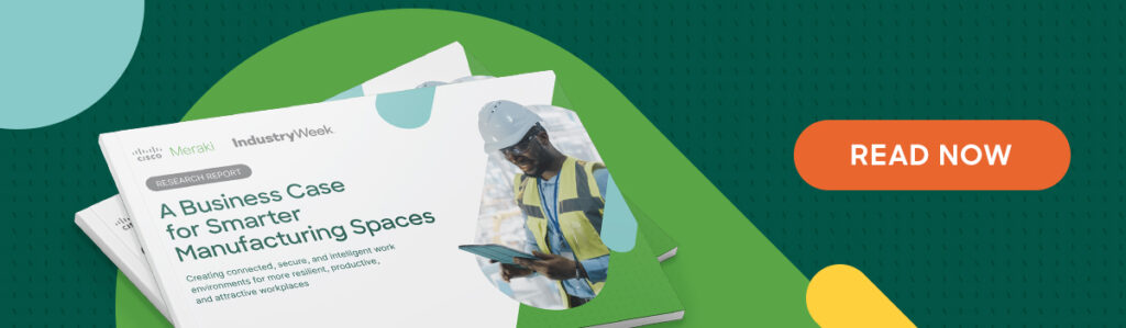 To that end, Meraki collaborated with IndustryWeek, a U.S.-based publication specializing in manufacturing, to assess how this modernization is tracking. We sponsored a global survey with a focus on digitalizing physical spaces, which included nearly 160 respondents at the manager level in information technology and operational and customer support roles.